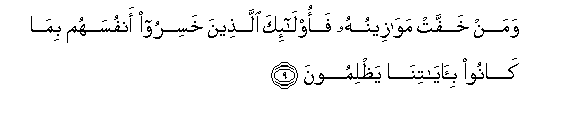 9. Na watakao kuwa na uzani khafifu, basi hao ndio walio zitia khasarani