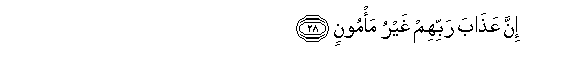 28. Hakika adhabu ya Mola wao Mlezi si ya kuaminika nayo.