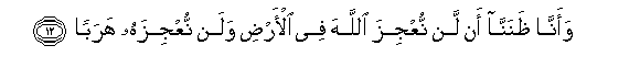 12. Nasi tulijua kuwa hatutomshinda Mwenyezi Mungu duniani, wala
