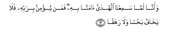 13. Nasi tulipo usikia uwongofu tuliuamini. Basi mwenye kumuamini