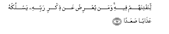 17. Ili tuwajaribu kwa hayo. Na anaye puuza kumkumbuka Mola wake