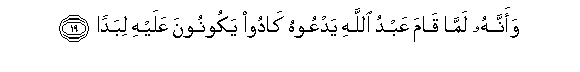 19. Na hakika Mja wa Mwenyezi Mungu alipo simama kumwomba, wao walikuwa