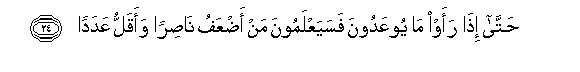 24. Hata watakapo yaona wanayo ahidiwa, ndipo watakapo jua ni nani