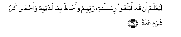 28. Ili Yeye ajue kwamba wao wamefikisha ujumbe wa Mola wao Mlezi,