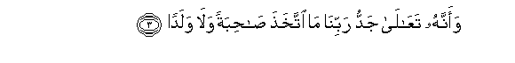 3. Na kwa hakika utukufu wa Mola wetu Mlezi umetukuka kabisa; hana