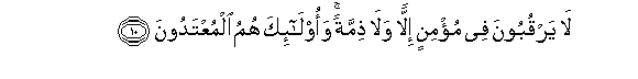10. Hawatazami kwa Muumini udugu wala ahadi; basi hao ndio warukao