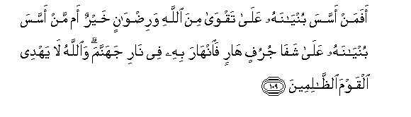 109. Je! Mwenye kuweka msingi wa jengo lake juu ya kumcha Mwenyezi