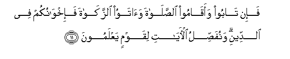 11. Basi wakitubu na wakashika Sala na wakatoa Zaka, basi ni ndugu