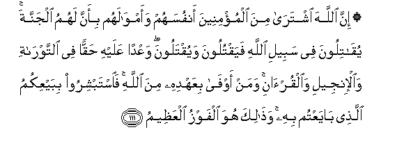 111. Hakika Mwenyezi Mungu amenunua kwa Waumini nafsi zao na mali