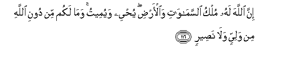 116. Hakika Mwenyezi Mungu anao ufalme wa mbingu na ardhi; huhuisha