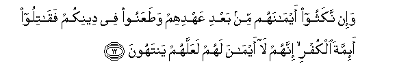 Dini yenu, basi piganeni na waongozi wa ukafiri. Hakika hao hawana viapo