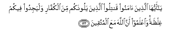 123. Enyi mlio amini! Piganeni na wale makafiri walio karibu yenu,