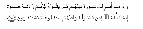 124. Na inapo teremshwa Sura wapo miongoni mwao wasemao: Ni nani