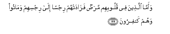 125. Ama wale wenye maradhi katika nyoyo zao, basi inawazidishia