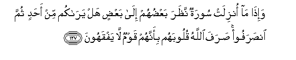 127. Na ikiteremka Sura hutazamana wao kwa wao, (kama kwamba wanasema:)