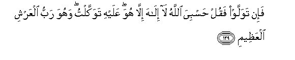 129. Basi wakigeuka, wewe sema: Mwenyezi Mungu ananitosheleza. Hapana