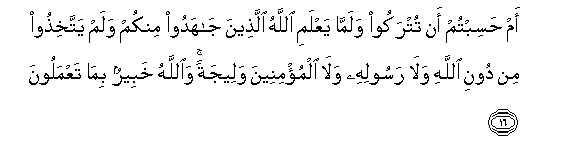 16. Je, mlidhani kuwa mtaachwa tu, bila ya Mwenyezi Mungu kuwajuulisha