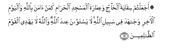 19. Je, mnafanya kuwanywesha maji Mahujaji na kuamirisha Msikiti