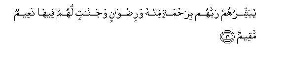 21. Mola wao Mlezi anawabashiria rehema zitokazo kwake, na radhi,