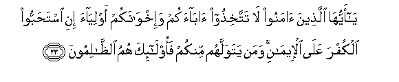 23. Enyi mlio amini! Msiwafanye baba zenu na ndugu zenu kuwa vipenzi