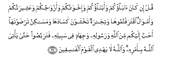 na majumba mnayo yapenda, ni vipenzi zaidi kwenu kuliko Mwenyezi Mungu
