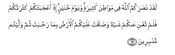 25. Hakika Mwenyezi Mungu amekunusuruni katika mapigano mengi, na