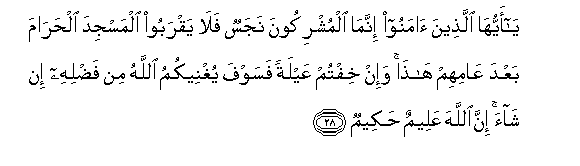 mbele ya Mtume wake, ila wale mlio ahidiana nao kwenye Msikiti Mtakatifu?