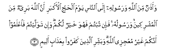 3. Na ni tangazo kutokana na Mwenyezi Mungu na Mtume wake kwa wote