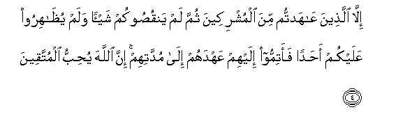 4. Isipo kuwa washirikina ambao mliahidiana nao kisha wasikupunguzieni