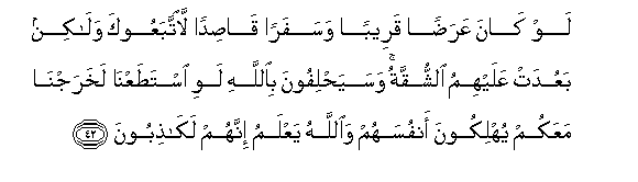 na Mtume wake hapo kabla. Na bila ya shaka wataapa kwamba: Hatukukusudia