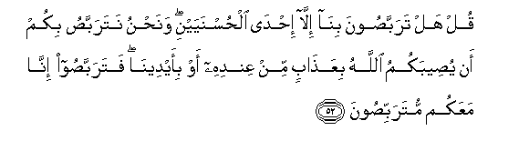 na Mtume wake na Jihadi katika Njia yake, basi ngojeni mpaka Mwenyezi Mungu