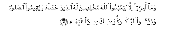 5. Nao hawakuamrishwa kitu ila wamuabudu Mwenyezi Mungu kwa kumtakasia