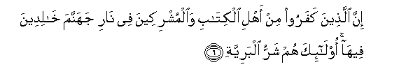 6. Hakika walio kufuru miongoni mwa Watu wa Kitabu na washirikina